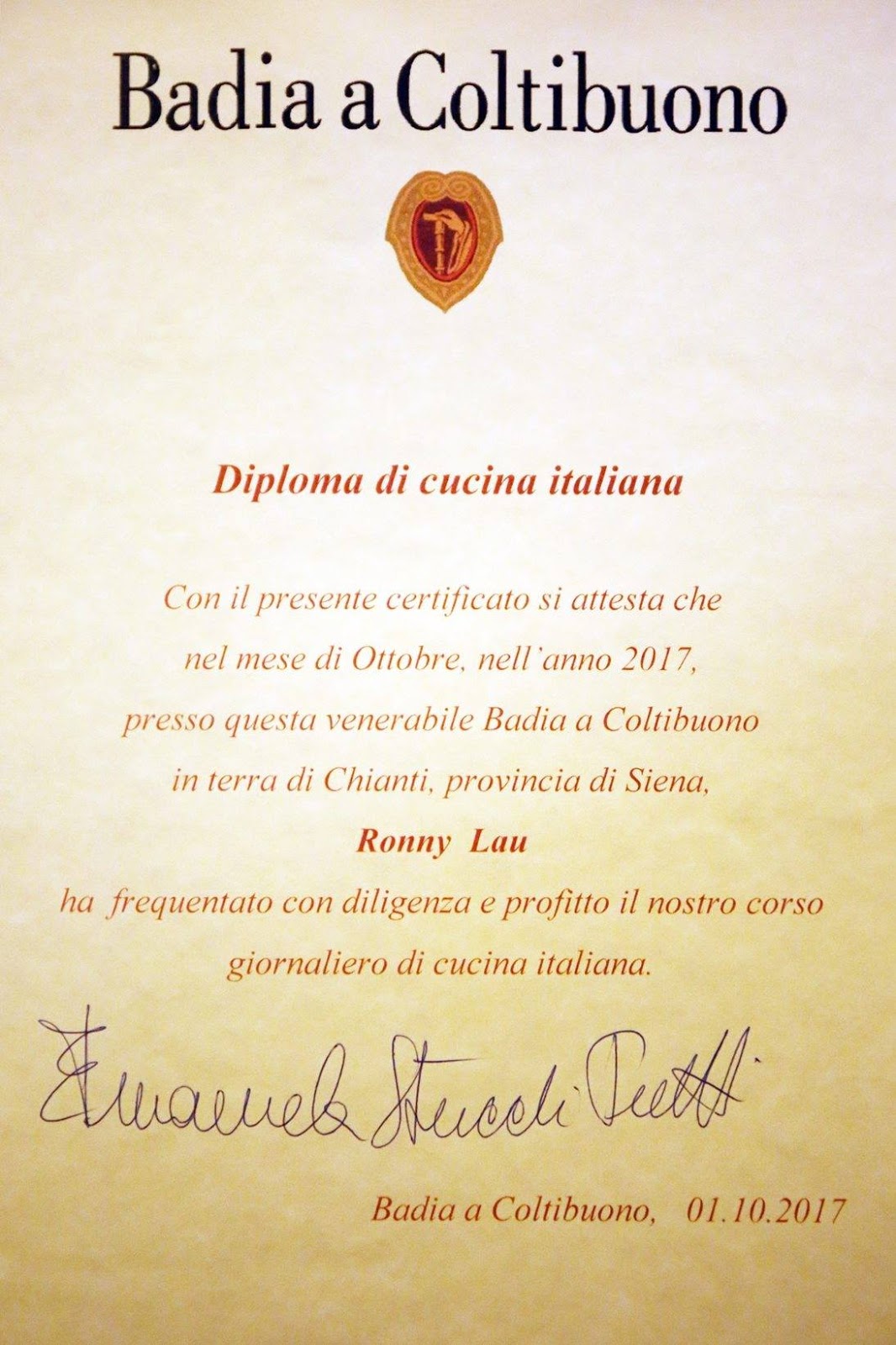 莊主對各學員聰穎的資質擊節稱賞,親手頒發意大利菜烹飪文憑 — 對,是文憑,不是一般的證書 — 回港應該不愁出路了。